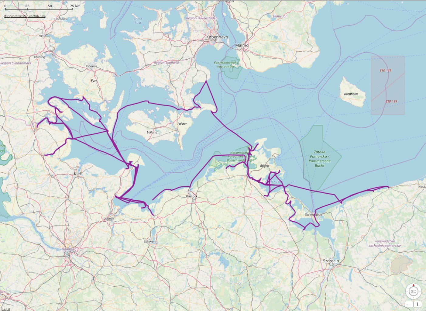Rügen und alle Botten satt, Polen bis Kolberg, Oder-Haff und Achterwasser bis Stralsund.